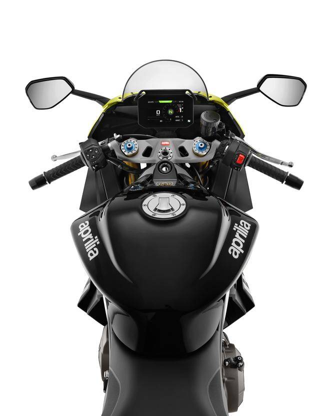 電子輔助控制系統(tǒng)方面,兩個車型均標(biāo)配了電控油門和集成了六軸 IMU,多功能的 APRC(Aprilia Performance Ride control,阿普利亞高性能騎行控制)電控套件,套件的功能除了可選的騎行模式(不同騎行模式對應(yīng)不同的 ATC 牽引力控制、AWC 車輪控制、AEB 發(fā)動機(jī)制動控制、AEM 動力輸出模式預(yù)設(shè)),還包括了通常應(yīng)用于賽車場景的起步彈射控制系統(tǒng)(Launch Control);此外還有彎道 ABS、ACC 巡航控制和 AQS 雙向快速換檔系統(tǒng)。