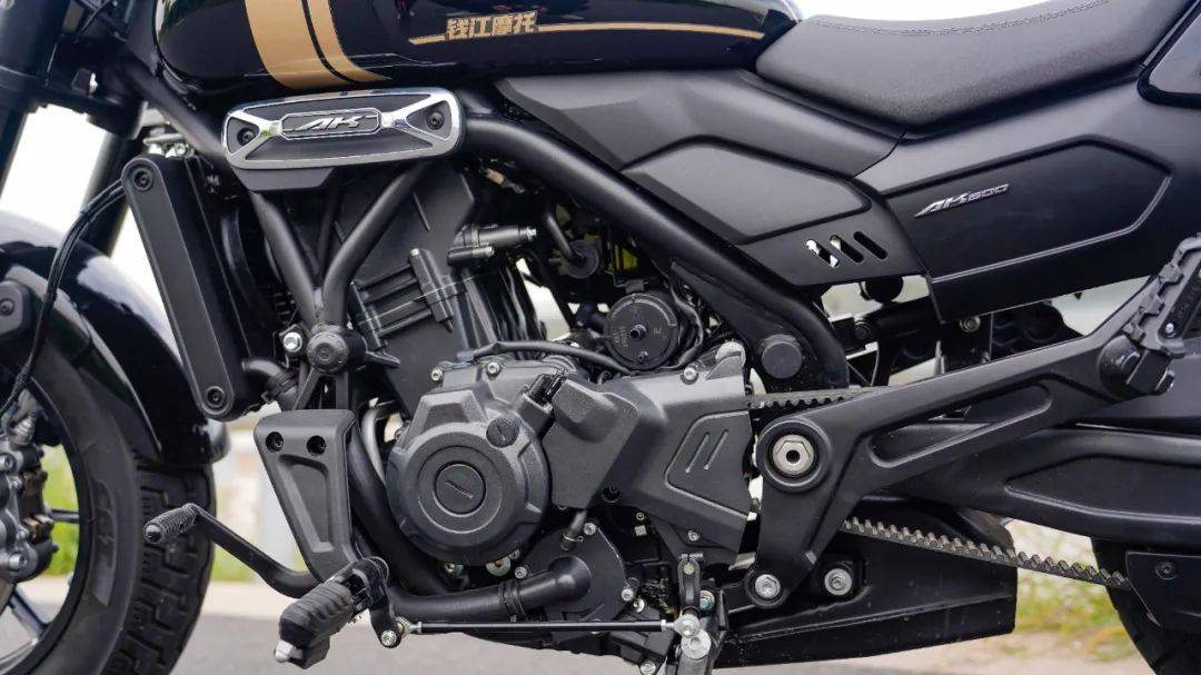 動力配置動力配置方面,直列雙缸水冷554cc發(fā)動機,也就是賽550同款發(fā)動機,但有針對性的調(diào)校,低扭對應轉(zhuǎn)速下調(diào)了500轉(zhuǎn),最大扭矩提升了0.5牛米,目前的最大功率45kW/8500rpm,峰值扭矩55.5N·m/5500rpm;同時這臺引擎270°曲軸不僅在5500轉(zhuǎn)即可釋放最大扭矩,使得整車的低扭表現(xiàn)良好之外,還有更優(yōu)異的振動抑制,大幅降低震動,結(jié)合皮帶傳動,讓整車的運行品質(zhì)得到明顯提升。避震器雖然沒有用招牌的馬祖奇減震,但規(guī)格依然拉滿,前倒立式可調(diào)避震,支持回彈阻尼,壓縮阻尼調(diào)節(jié),后多連桿側(cè)置避震,同樣支持調(diào)節(jié),在這個級別價位基本上是獨一份,值得好評。剎車也是打的錢江牌,采用了前單碟對向四活塞卡鉗,后單向單活塞卡鉗,標配雙通道ABS+TCS,剎車規(guī)格在這個級別里依然是主流水準。傳動采用寬幅皮帶,輪胎規(guī)格并未按照巡航車型追求大而美的標準,而是采用了前130-90/16,后150-80/16的尺寸,帶來更好的前輪指向性及靈活度,這也是AK628巧思之處,具備不同于傳統(tǒng)巡航的靈活,更貼合新手入門的駕駛需求。