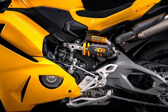 車體方面,2025 Panigale V2 采用一副鋁合金制的單體式車架、設(shè)計靈感來自新一代 Panigale V4 的雙面式后搖臂;S 版標配了 Ohlins 奧林斯配套的前后懸掛系統(tǒng)(前叉標準行程為 120 mm、后減震標準行程為 150 mm),Brembo布雷博配套的制動系統(tǒng),TFT 全彩色的數(shù)字式儀表板,鋰電池等。