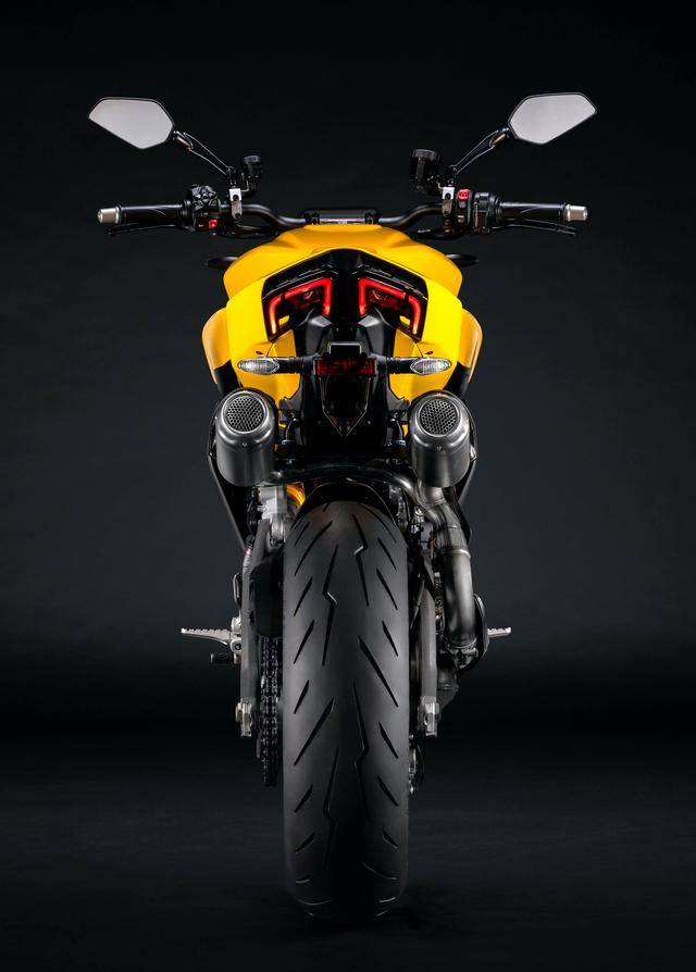 新一代的 Streetfighter V2 S 搭載一副與 Panigale V2 系列相同的發(fā)動機,最大動力輸出同為 88 kw(約 120 匹)。車體方面,采用了與跑車規(guī)格相同型式的鋁合金制的單體式車架、雙面式后搖臂,更長的標準軸距(1493 mm vs Panigale V2 的 1465 mm);有著一個街霸過去典型的家族風(fēng)格特征的外觀設(shè)計;標配了 Ohlins 奧林斯的前后懸掛系統(tǒng)(有著比跑車版更長的 160 mm 后減震標準行程),Brembo布雷博的制動系統(tǒng),大量的電子輔助控制功能等。