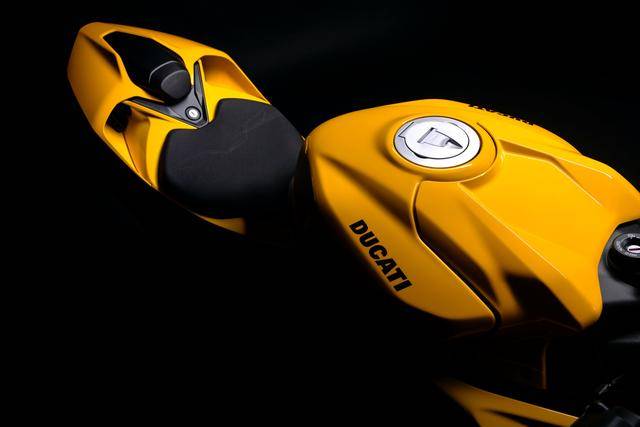 在標志性色彩的玩法上,杜卡迪與另一個意大利制造商法拉利相似,除了紅色之外,黃色也是這兩個意大利制造商特意塑造出來的主題顏色之一,通過時間的沉淀和積累,從而成為其 “ 傳統(tǒng) ” 的官方標志性色彩之一。而使用黃色的杜卡迪車輛,最早可以追溯至上世紀七十年代初、在比賽中亮相的 750 Sport 和 750 SS Desmo;到了九十年代,Giallo Ducati “ 黃色杜卡迪 ” 進入量產(chǎn)車的領(lǐng)域里,多個運動車型,包括對應(yīng) WorldSSP600 規(guī)格的 748/749 和對應(yīng) WorldSBK 規(guī)格的 916/996、999 等,都曾推出過黃色的版本。