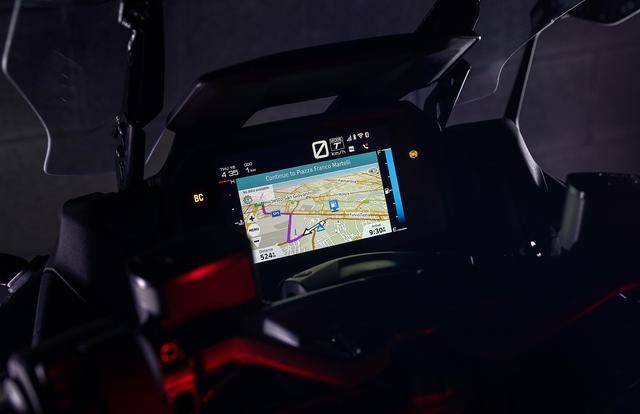 車體方面,采用了一副鋁合金制的車架,行程為 120 mm 的倒立式前叉、行程為 117 mm 的搖臂 + 單筒式后減震,前雙碟、后單碟的制動(dòng)系統(tǒng),2025 款上才出現(xiàn)的 7 英寸 TFT 全彩色數(shù)字式儀表板,智能鑰匙、可調(diào)的前風(fēng)擋、可調(diào)的駕駛員靠背,直徑為 15 英寸的前后車輪等。