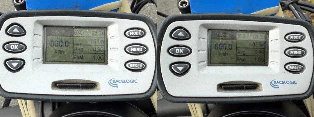 制動(dòng)方面,原廠單碟對(duì)向四活塞卡鉗,后單碟單向單活塞,配置看起來不高,但實(shí)際制動(dòng)成績(jī)相當(dāng)優(yōu)秀,一點(diǎn)不輸前雙碟的車型。經(jīng)多次實(shí)測(cè)30-0的最好為3.9m,60-0為15.1m,在我們測(cè)評(píng)過的500級(jí)以上的巡航車中屬于前列,僅次于體重較輕的CU525,要比我們測(cè)試過黑旗500、金吉拉500、RE560、450SR都要明顯好。我們分析,首先還是整車192kg的整備質(zhì)量,在500級(jí)巡航車中真不算重,其次錢江的原廠卡鉗手感雖然偏硬,但制動(dòng)力來的足夠直接,屬于隨捏隨有的制動(dòng)風(fēng)格,給人的制動(dòng)信心很足,最后是原廠的ABS介入時(shí)機(jī)偏晚,最大程度上的保證了剎車力道的釋放,三點(diǎn)結(jié)合造就了AK628的不俗成績(jī)。不過也有要吐槽的地方,剎車手柄在調(diào)節(jié)到1檔最小間距時(shí),手柄間距依然不小,加上偏硬的手感,幾次制動(dòng)下來手部明顯的酸累,建議再縮短一點(diǎn)手柄開合間距。另外值得一提的是在緊急制動(dòng)過程中車輛的穩(wěn)定性很好,重剎時(shí)整車沒有發(fā)飄的狀況,另外這套正新輪胎雖然是半熱熔胎,但急剎時(shí)出現(xiàn)一定的響胎狀況,抓地表現(xiàn)偏普通(測(cè)評(píng)當(dāng)日上午氣溫大約16度)。