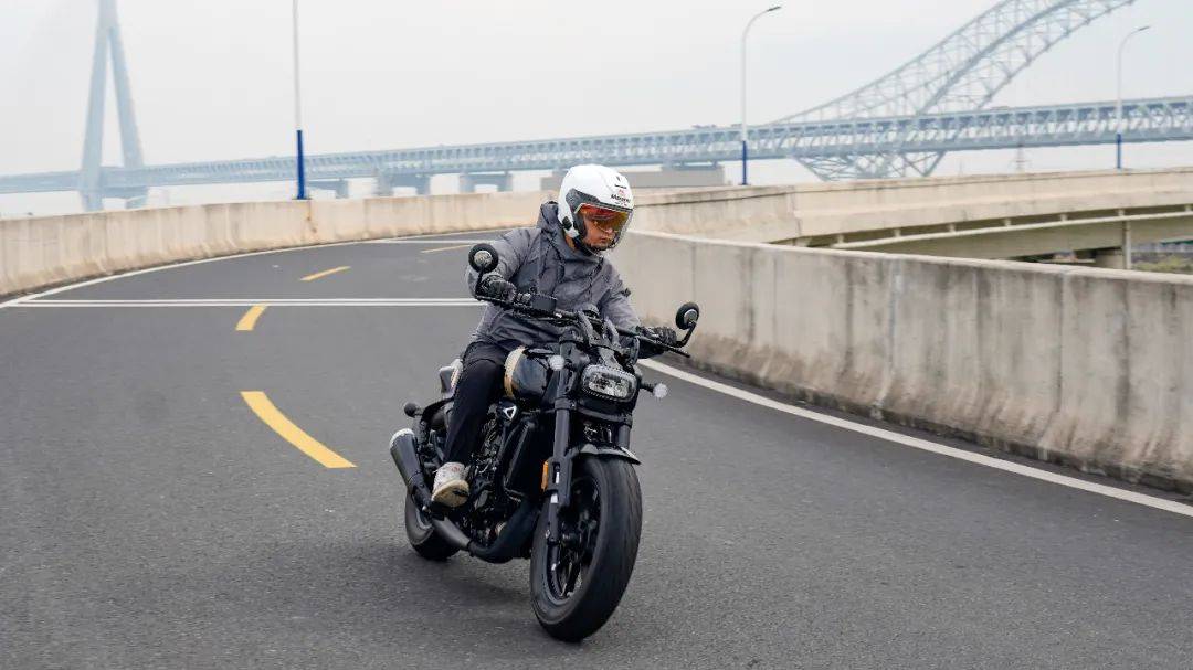 入彎前連續(xù)降檔,離合器質(zhì)感輕盈,檔位清晰。在減速時(shí)前避震器的支撐性能良好,制動(dòng)迅速高效,前輪的指向性精準(zhǔn),車身左右傾倒響應(yīng)及時(shí),沒有拖沓感,但胎寬130的前輪在急彎或S彎中快速轉(zhuǎn)向時(shí)會(huì)有一定的鈍感,這可能是拖曳距的設(shè)定帶來的,即便如此,這個(gè)運(yùn)動(dòng)性表現(xiàn)在同級(jí)別巡航車中也算是表現(xiàn)強(qiáng)的了。