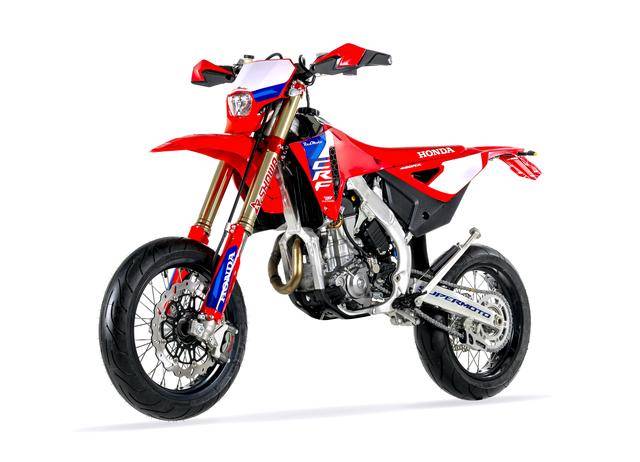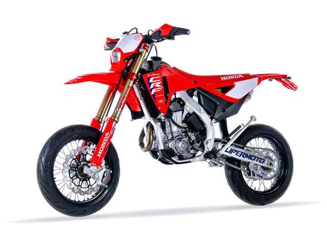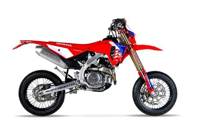 下面的圖片,現(xiàn)行的 2025 款 CRF 450RX Supermoto(資料圖片)。