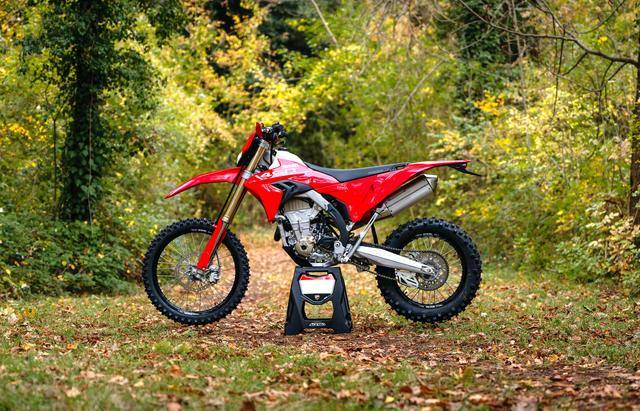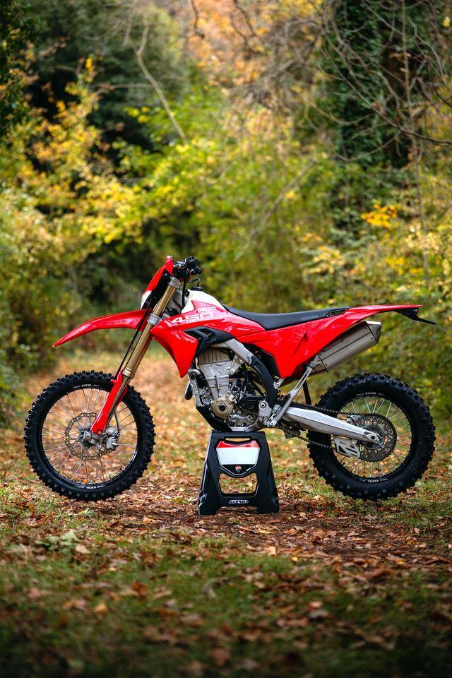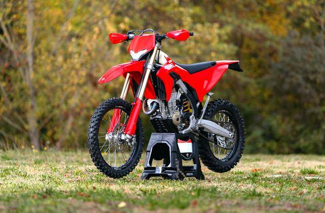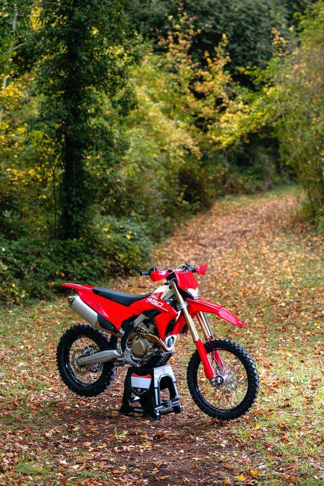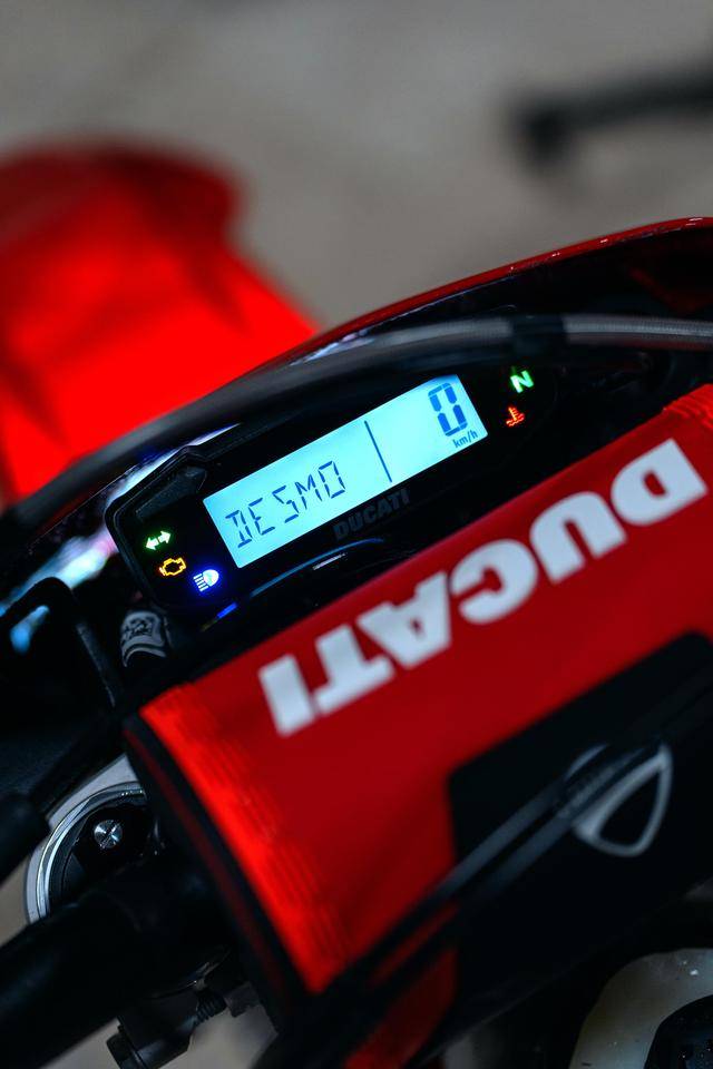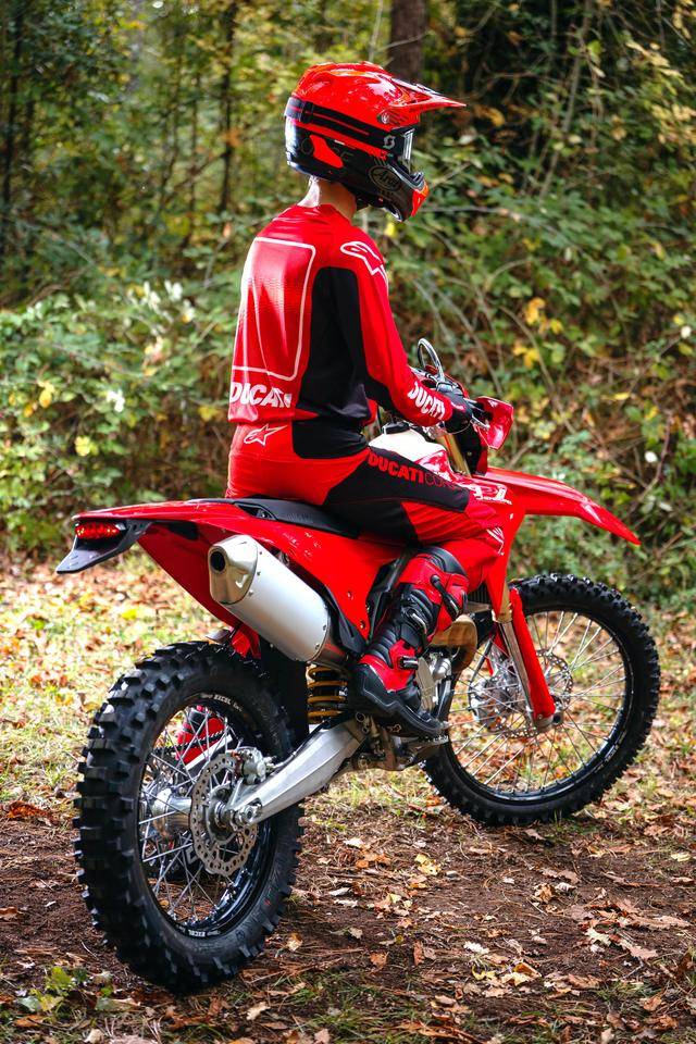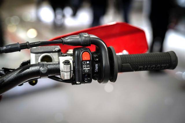 杜卡迪在今年四月正式發(fā)布了屬于 MX(Motocross,場(chǎng)地越野)規(guī)格的全新市售越野賽車(chē) Desmo450 MX,這是杜卡迪歷史上的第一款市售越野賽車(chē)。市售規(guī)格的 Desmo450 MX 搭載一副水冷四沖程單氣缸、DOHC 四氣閥、Desmodromic 氣閥正時(shí)控制(軸控制氣閥,而常見(jiàn)的氣閥開(kāi)合控制組件是彈簧)的發(fā)動(dòng)機(jī),缸徑、行程為 96 mm x 62.1 mm,排氣量 449.6 cc,峰值動(dòng)力輸出 46.7 kw(約 63.5 匹)/9400 rpm,最大扭矩輸出 53.5 N.m/7500 rpm。