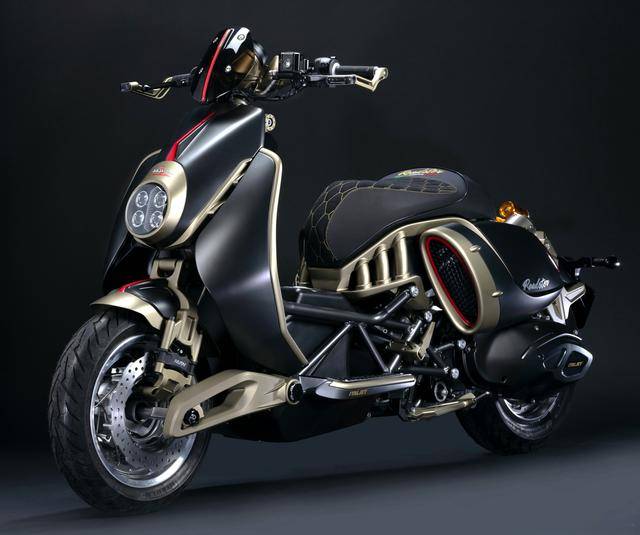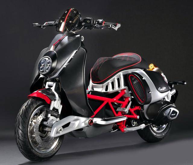 1、采用一副 Italjet 標(biāo)志性的、全外露風(fēng)格的鋼管編織式的車架;