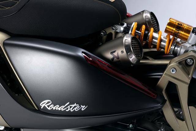設(shè)計(jì)和配置上,Roadster 搭載一副水冷四沖程單氣缸、四氣閥的發(fā)動(dòng)機(jī),缸徑、行程為 83 mm x 72.8 mm,排氣量 394 cc,最大動(dòng)力輸出 31 kw(約 41.5 匹)/7500 rpm,峰值扭矩輸出 41.2 N.m/6000 rpm,符合歐五 + 排放標(biāo)準(zhǔn)。CVT 無段變速 + 皮帶的傳動(dòng)系統(tǒng)。