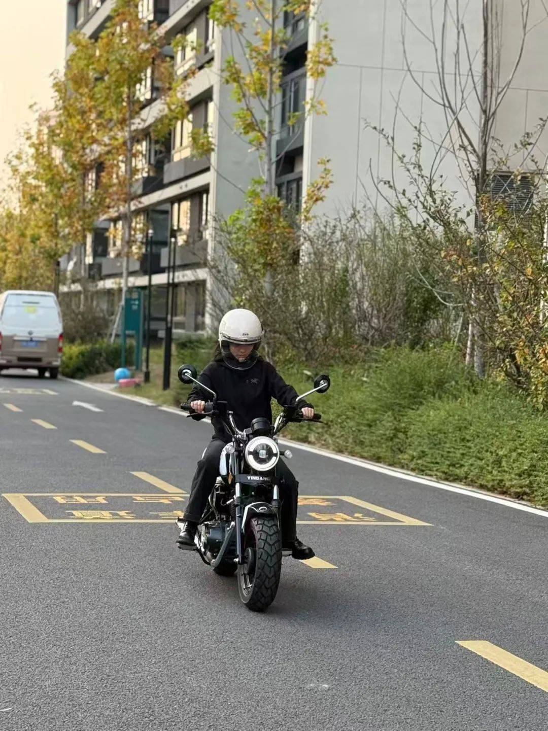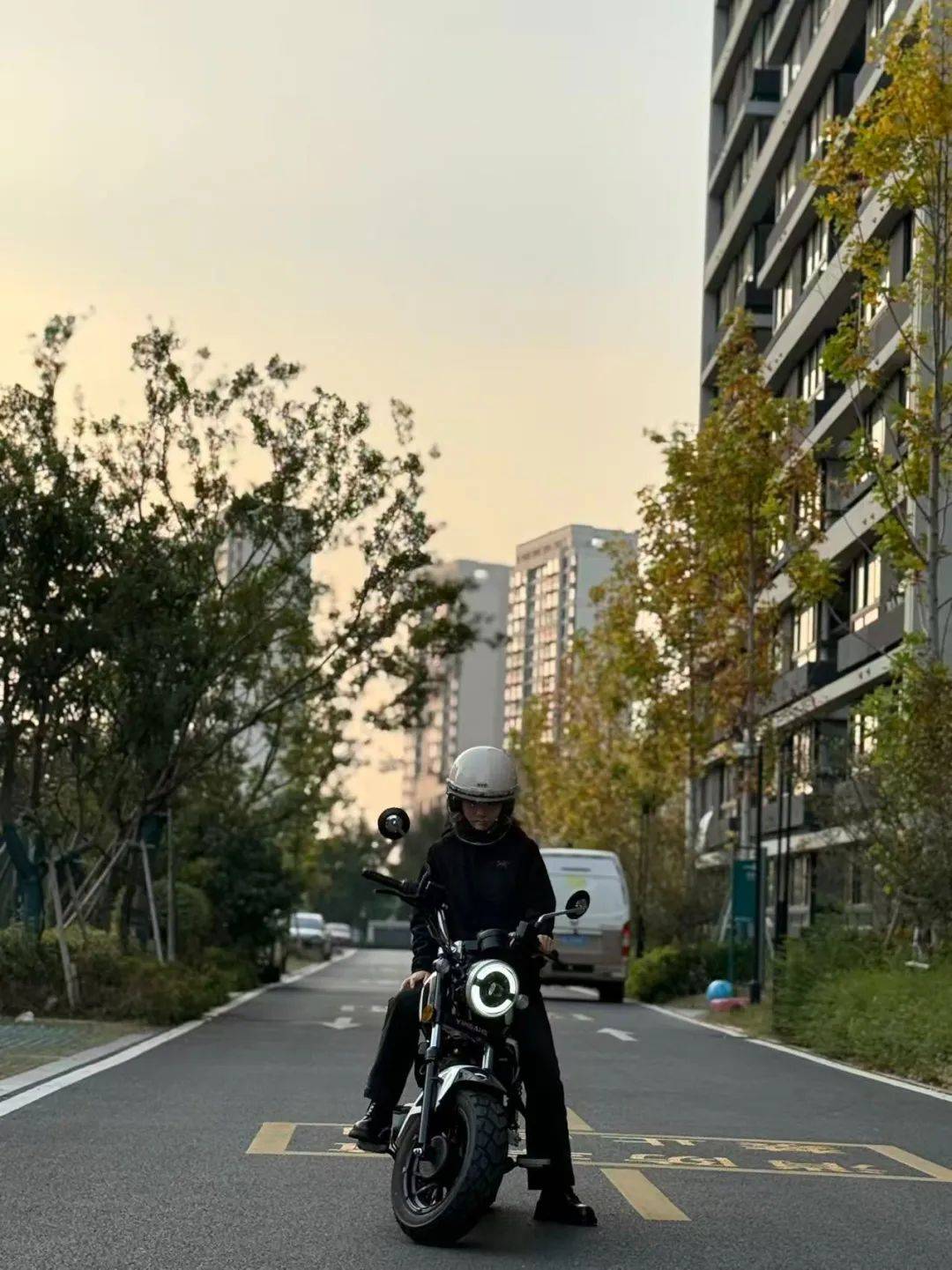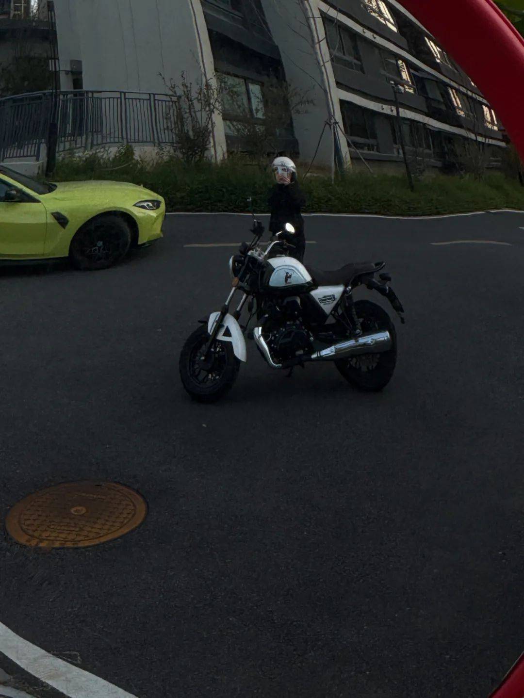 我是來自南京的女騎,上一款車還是愛瑪電動,騎時間久了電瓶不給力,感覺電動車充電麻煩,就想買摩托車。因為自己個子比較小,大型一點的摩托車不太友好,平時刷摩托范和小紅書看到網友推薦這款車,被迷你的外表吸引,今年3月去實體店看車,第一眼就被配色款式大小吸引當即訂車,買完車就去考駕照了。