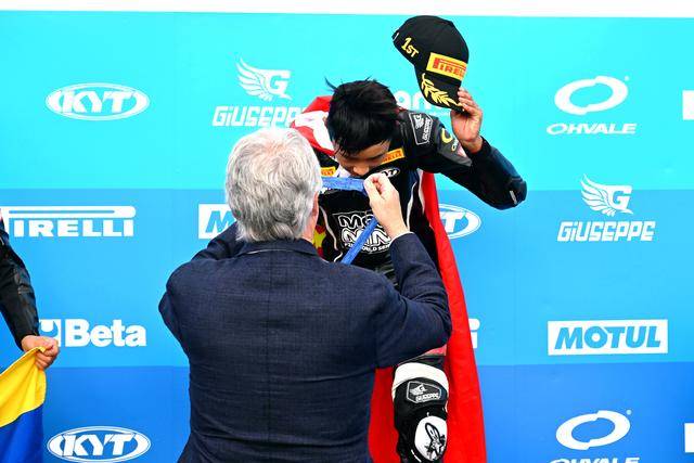 190 級(jí)別,駕駛著 84 號(hào)車的孫圣博,以絕對(duì)的優(yōu)勢(shì)奪得了這個(gè)最高級(jí)別的總冠軍,這是中國車手首次在 FIM 級(jí)別的公路型摩托車大賽里、歷史性拿到的首個(gè)世界冠軍。