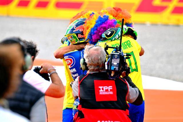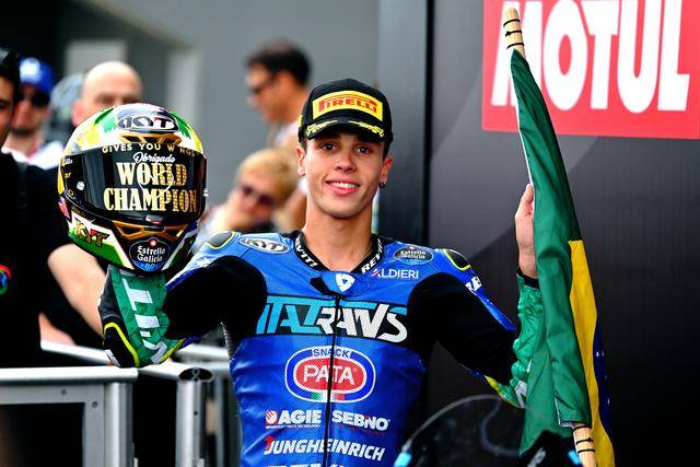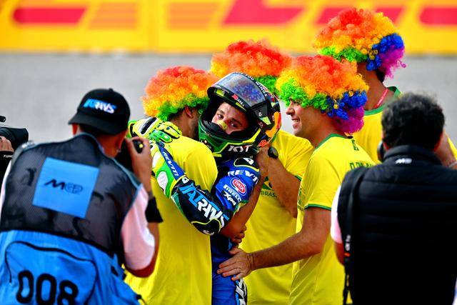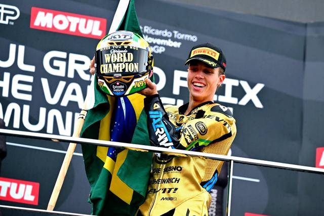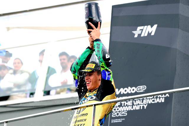Moto2 級別,憑借著在下半賽季的出色發(fā)揮,賽前積分榜的領(lǐng)先者、駕駛 10 號車的巴西車手莫雷拉(Diogo Moreira),盡管只以第十名完賽,但隨著主要的對手、18 號車的西班牙車手岡薩雷斯(Manuel Gonzalez)在比賽的后段返回了維修區(qū),莫雷拉拿到勝利已無懸念,他最終奪得了 2025 賽季 Moto2 級別世界冠軍(車手年度積分總冠軍),成為了歷史上第一位在 GP 里面獲得世界冠軍的巴西車手。