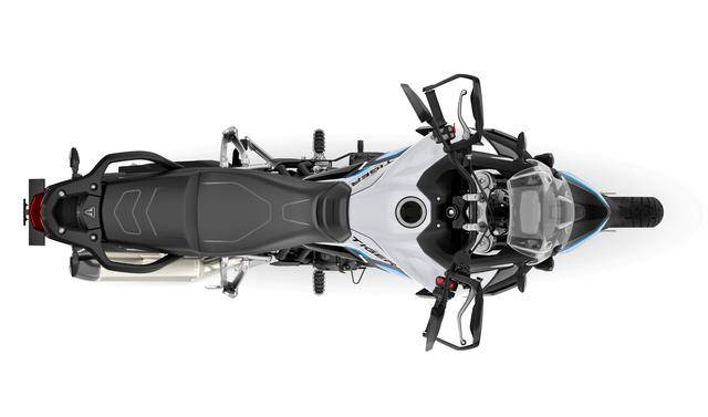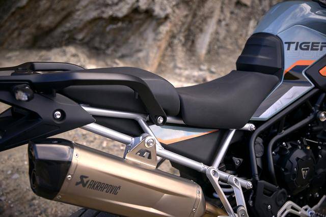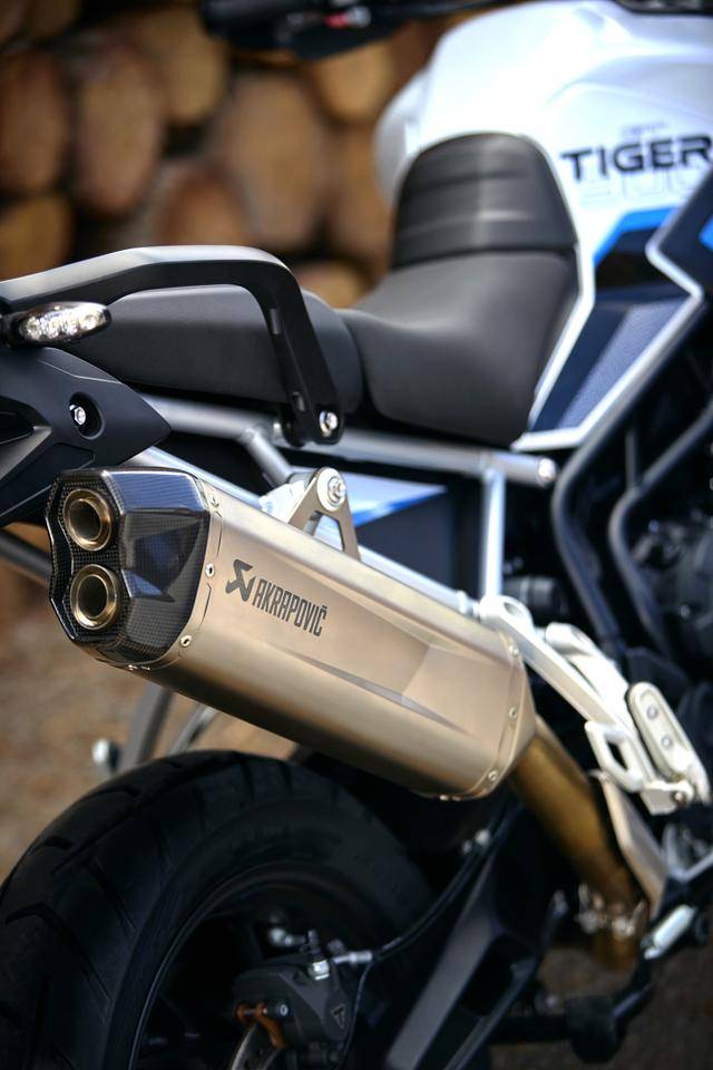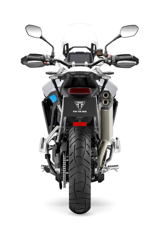 * 與 GT Pro 版相比,新的 Tiger 900 Alpine 阿爾卑斯版標(biāo)配了 Akrapovic 阿克拉波維奇的排氣管,加裝了位于車身底部的發(fā)動(dòng)機(jī)兩側(cè)護(hù)架,并采用了一個(gè)專屬的 Snowdonia White 雪山白 + Sapphire Black 藍(lán)黑色的車身圖案。