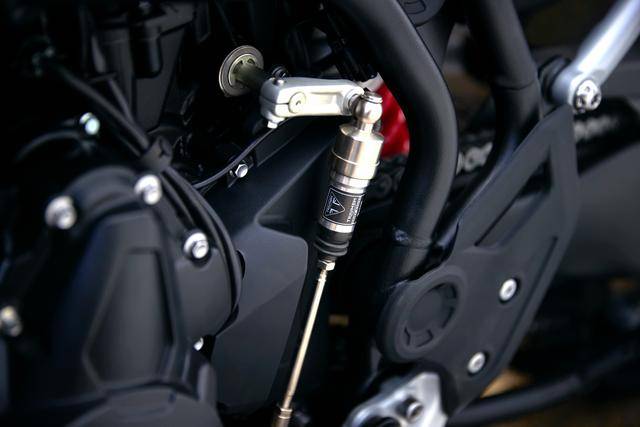 * 標(biāo)配了 Showa 的前后懸掛系統(tǒng),前面是叉芯口徑為 45 mm、標(biāo)準(zhǔn)行程為 240 mm 的倒立式前叉, 后面是標(biāo)準(zhǔn)行程為 230 mm 的單筒式后減震;
