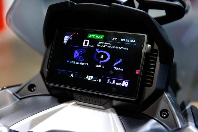 5、外觀造型上,采用了一個(gè)阿普利亞運(yùn)動(dòng)車(chē)型 + 探險(xiǎn)車(chē)的混合體風(fēng)格,前 LED 大燈的輪廓可讓人想到他們的 RSV,較高的前風(fēng)擋、車(chē)把兩端的護(hù)罩則是一個(gè)典型的探險(xiǎn)車(chē)風(fēng)格;手動(dòng)可調(diào)的前風(fēng)擋,在 70 mm 的調(diào)節(jié)范圍內(nèi)、提供五級(jí)選擇;