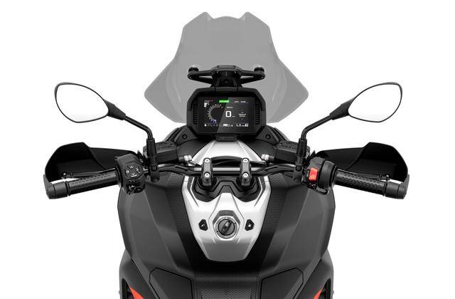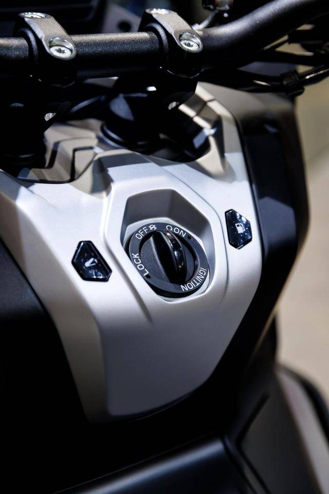8、高達(dá) 195 mm 的離地間隙(注:作為對(duì)照,HondaADV350 的離地間隙為 155 mm),且鞍座高度被控制在 820 mm(ADV350 為 795 mm);容量為 12 公升的油箱,前 16、后 14 英寸直徑的車(chē)輪標(biāo)配了全地形的輪胎;5 英寸 TFT 全彩色數(shù)字式儀表板,標(biāo)配了無(wú)鑰匙系統(tǒng),整備重量 186 公斤。