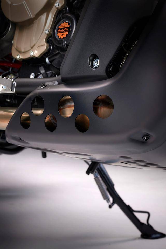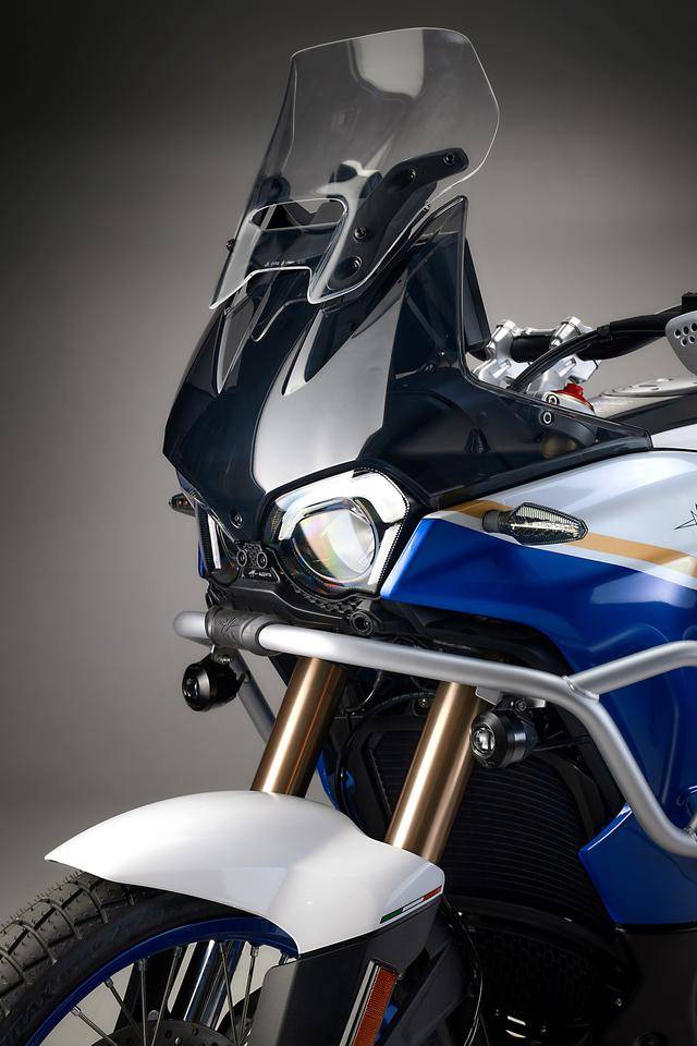 * 標(biāo)配了中央大腳架,用于提高越野環(huán)境下防護(hù)能力的、位于車身前部的防護(hù)桿,以及用于提高能見(jiàn)度的前霧燈。