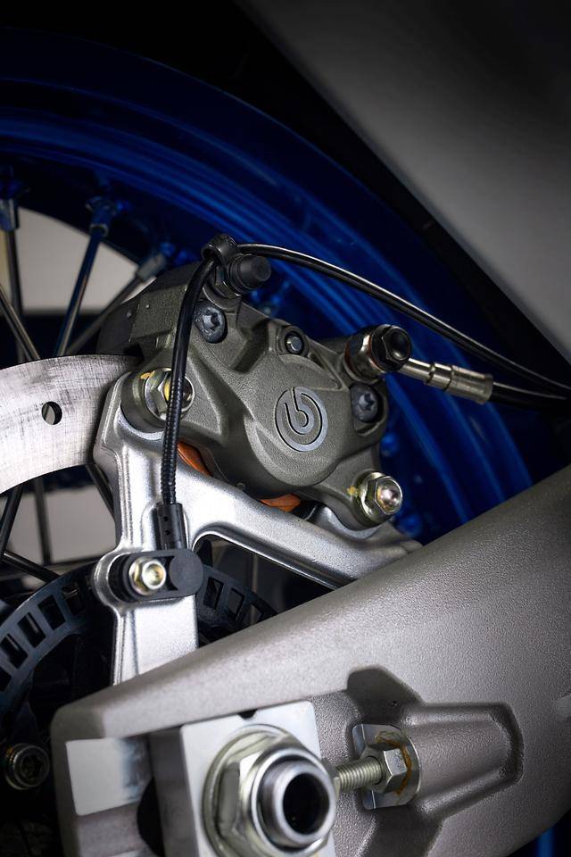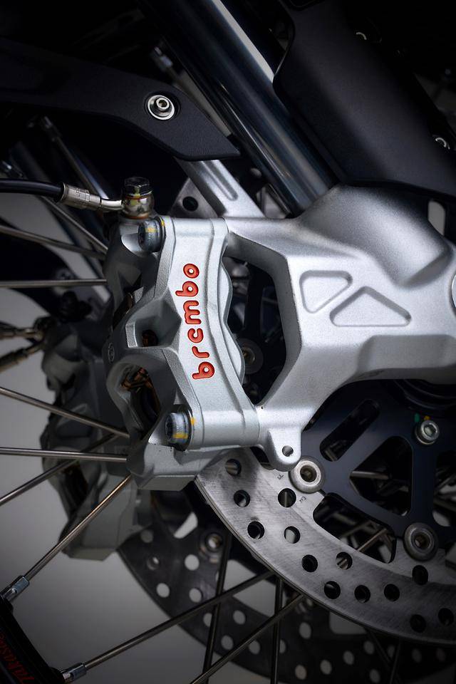4、Brembo布雷博配套的制動(dòng)系統(tǒng),前面采用了直徑為 320 mm 的雙浮動(dòng)式剎車碟 + Stylema 剎車卡鉗;