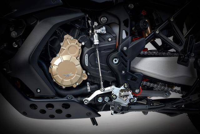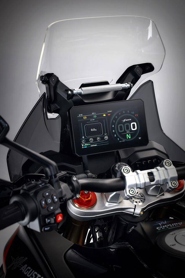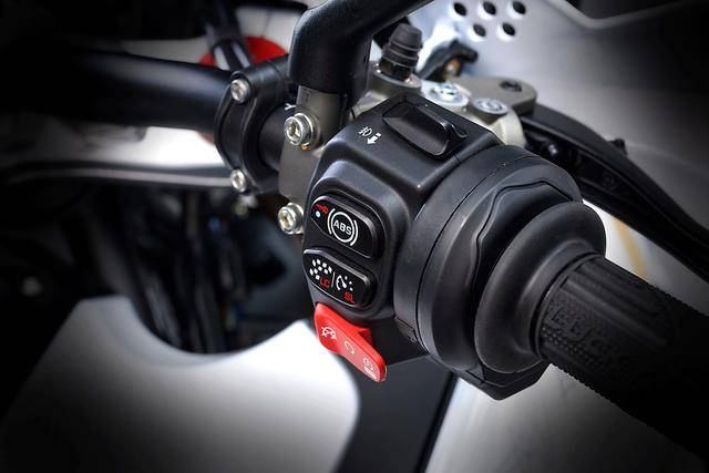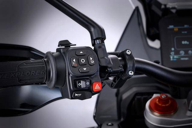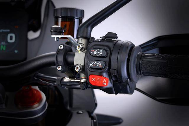 6、電子控制系統(tǒng)方面,采用了電控油門(mén)、集成了六軸的 IMU,標(biāo)配四個(gè)可選的騎行模式、八個(gè)級(jí)別可調(diào)的牽引力控制(五個(gè)專用于常規(guī)道路、兩個(gè)用于越野道路、一個(gè)用于雨天),兩級(jí)可調(diào)的發(fā)動(dòng)機(jī)制動(dòng)控制,彎道 ABS,巡航控制,快速換檔系統(tǒng)。