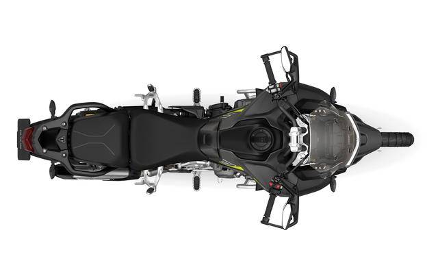 車體采用一幅鋼管式的車架、Tri-Link 鋁合金后搖臂;Showa 配套的電子自動(dòng)控制前后懸掛系統(tǒng),前面是叉芯口徑為 49 mm、標(biāo)準(zhǔn)行程為 200 mm 的倒立式前叉,后面是標(biāo)準(zhǔn)行程為 200 mm 的后減震;制動(dòng)系統(tǒng)標(biāo)配了 Brembo布雷博的 M4.30 Stylema 前剎車卡鉗,OCABS;全 LED 的燈光系統(tǒng),7 英寸的 TFT 彩色數(shù)字式儀表板,前 19、后 18 英寸直徑的合金鑄造式車輪、標(biāo)配了公路型的輪胎,850 mm - 870 mm 可調(diào)的鞍座高度。