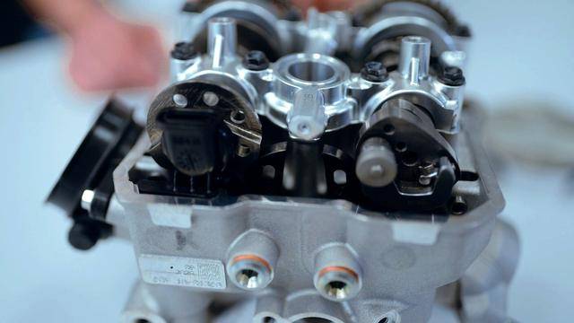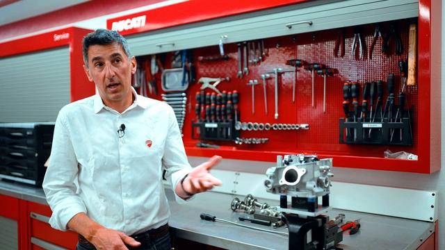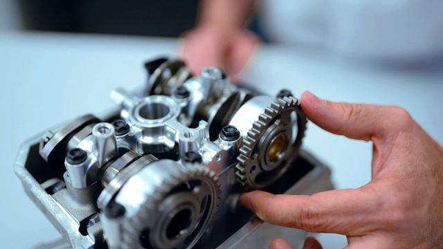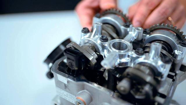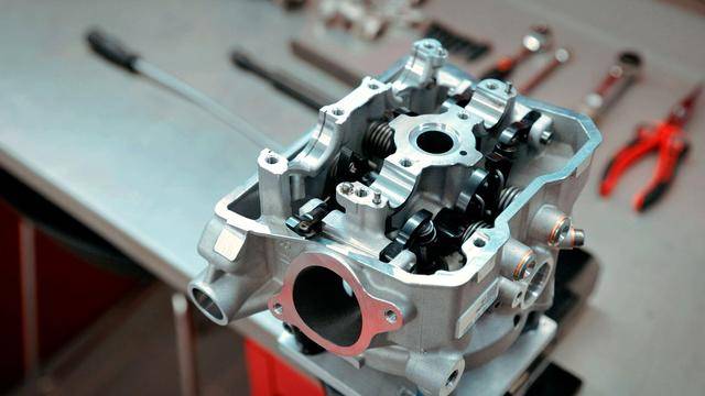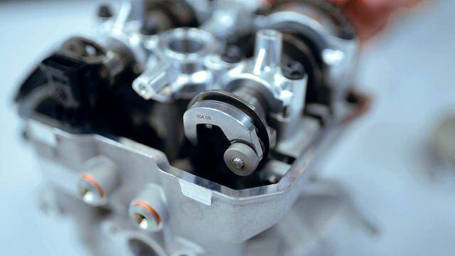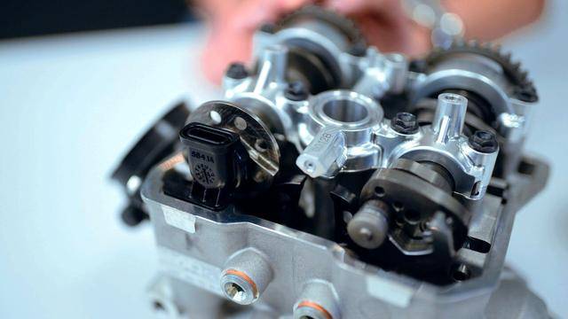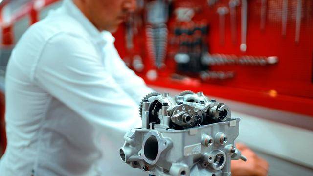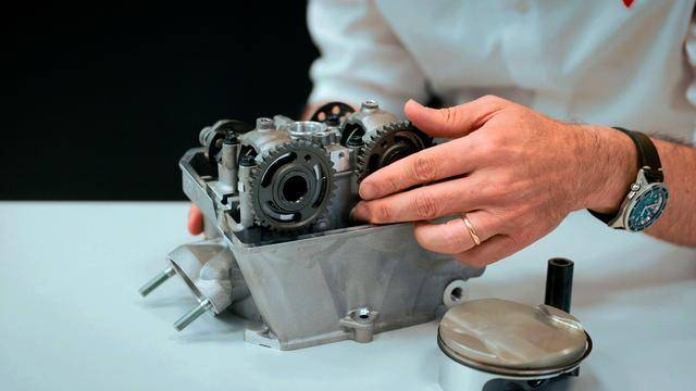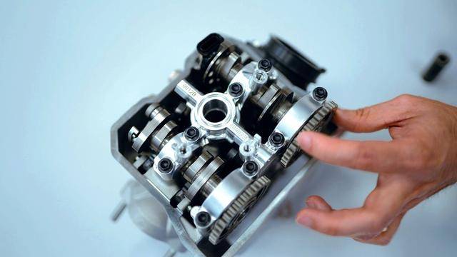 與杜卡迪在 MotoGP 和 WorldSBK 里面所使用的賽車(chē)一樣,采用 Desmodromic 氣閥正時(shí)控制(采用軸來(lái)控制氣閥的開(kāi)合,而常見(jiàn)的氣閥開(kāi)合控制組件是彈簧)的配氣結(jié)構(gòu),是 Desmo450 MX 的標(biāo)志之一。該設(shè)計(jì)的主要好處,是讓配氣系統(tǒng)、比傳統(tǒng)的配氣結(jié)構(gòu)(彈簧控制氣閥)容許更高的轉(zhuǎn)速,從而為騎行提供更大的擴(kuò)展性。