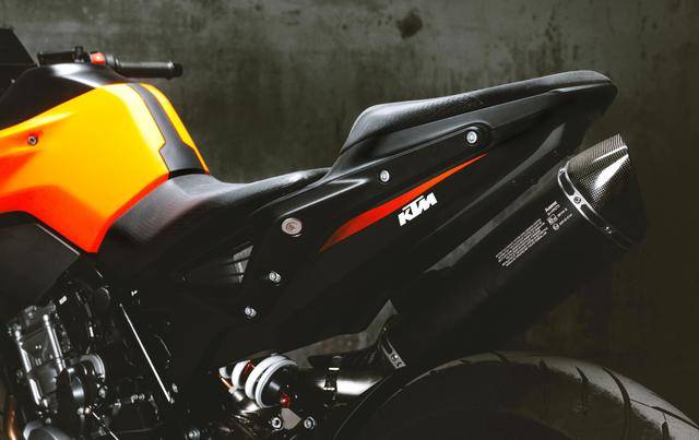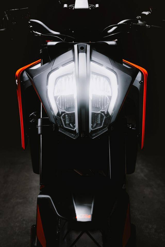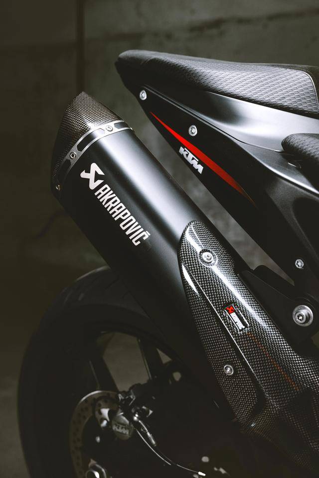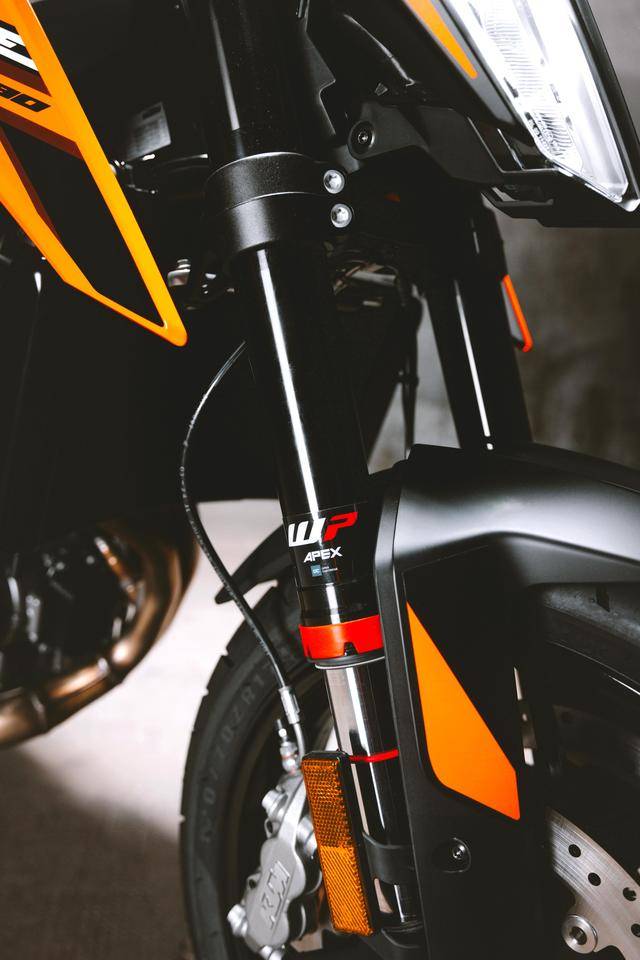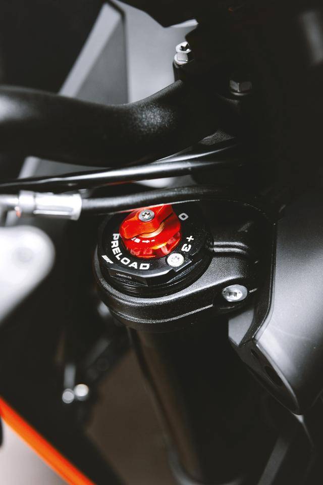 車體方面,采用一副鋼管式的車架,WP APEX 的前后懸掛系統(tǒng),前面是叉芯口徑為 43 mm、標(biāo)準(zhǔn)行程為 140 mm 的倒立式前叉,后面是標(biāo)準(zhǔn)行程為 150 mm 的單筒式后減震;車身采用一個(gè)鋒利的外觀造型,家族化臉譜的 LED 前大燈;電子輔助控制系統(tǒng)方面,配備了電子控制油門、可選的三個(gè)騎行模式(Rain 雨天、Street 街道、Sport 運(yùn)動)、牽引力控制、ABS,此外,用戶可額外選裝另外兩個(gè)騎行模式(Track 賽道模式、Performance 高性能模式)。
