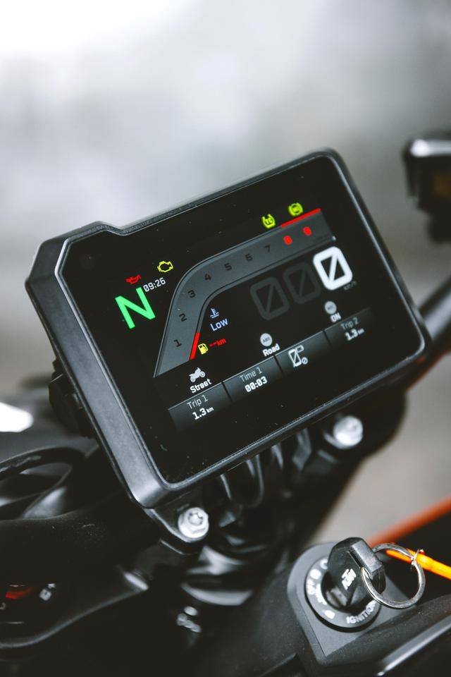 與此前的 2024 款相比,2025 - 2026 款 790 Duke 的主要變化,是換裝了 5 英寸的 TFT 全彩色數(shù)字式儀表板(2024 款采用 4.5 英寸的 TFT 儀表板),電控系統(tǒng)增加了六級可調(diào)的防前輪翹頭(Anti-wheelie)控制,經(jīng)過輕微修改的前大燈外罩,具有低光環(huán)境下自動發(fā)光的新型開關(guān)按鍵,以及新的車身圖案/貼花。