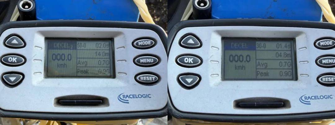 在時速30左右前后剎車同時進行制動時,鯨的穩(wěn)定性表現良好,沒有偏向一方的問題,所以日常低速急剎時不用擔心跑偏,制動性能也足夠,沒有剎不住的感覺,實測30-0最好成績4.8米,50-0為14米,手動離合版為4.6米,50-0為15.7米,制動性能上更勝一籌。