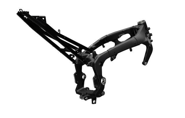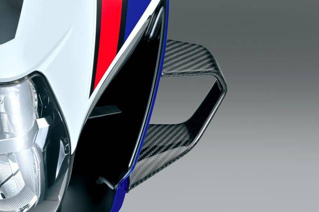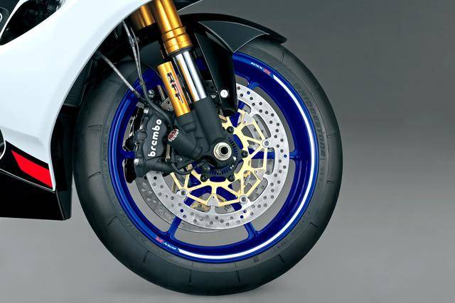 6、車(chē)身方面,沿用了現(xiàn)行款的鋁合金闊面車(chē)架、帶上加強(qiáng)肋的后搖臂,Showa 配套的 BFF 倒立式前叉、BFRC 后減震,并標(biāo)配了電子控制的方向阻尼器;制動(dòng)系統(tǒng)方面,前面是 Brembo布雷博配套的、直徑為 320 mm 的 T-drive 雙剎車(chē)碟和剎車(chē)卡鉗,后面是 Nissin 日信配套的、直徑為 220 mm 單碟的制動(dòng)系統(tǒng);