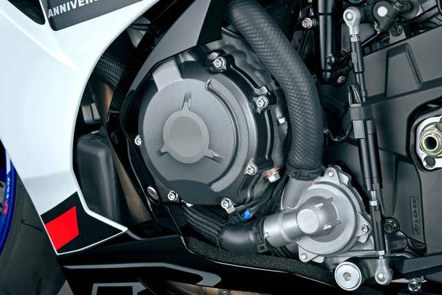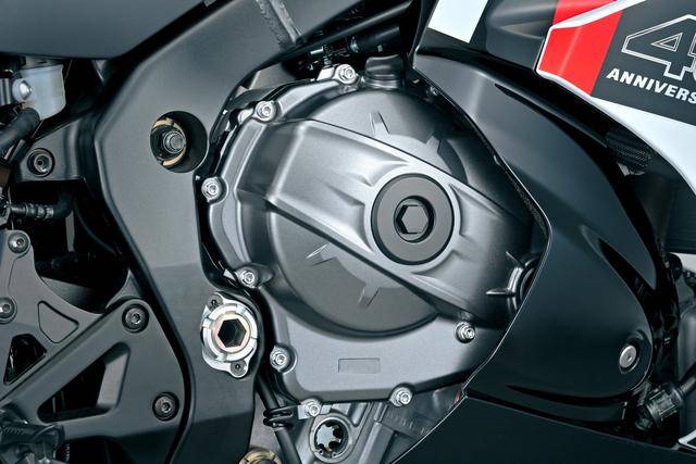 1、新的 2026 款車(chē)型沿用了 2017 款的水冷四沖程直列四氣缸、DOHC每氣缸四氣閥發(fā)動(dòng)機(jī),缸徑、行程仍為 76 mm x 56.1 mm,排氣量 999.8 cc,峰值動(dòng)力輸出被下調(diào)至 195 匹(上一版本的峰值動(dòng)力輸出為 200 匹/歐洲版)/13200 rpm、最大扭矩輸出 110 N.m(上一版本為 117.6 N.m)/11000 rpm。配備了來(lái)自初代 MotoGP 工廠(chǎng)賽車(chē) GSV-R 技術(shù)衍生而來(lái)的 SR-VVT(Suzuki Racing Variable Valve Timing,Suzuki 賽車(chē)可變氣閥正時(shí))系統(tǒng),SCAS(Suzuki Clutch Assist System 離合器輔助系統(tǒng))滑動(dòng)式離合器,是這副機(jī)器的亮點(diǎn)之一;