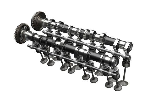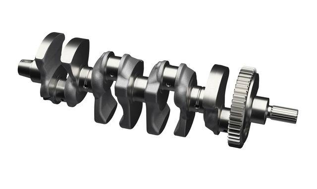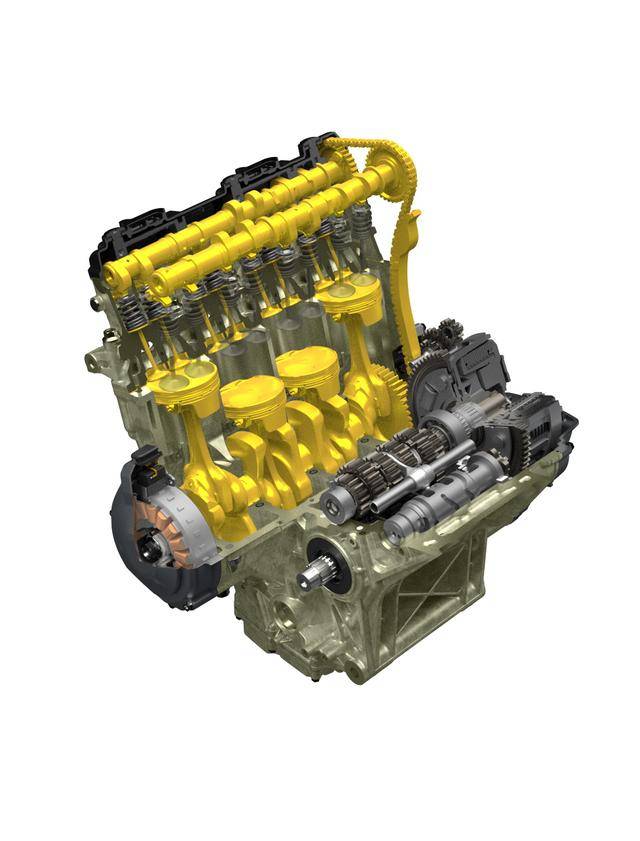 3、動(dòng)力單元的內(nèi)部,換裝了進(jìn)氣、排氣都采用了新凸角的薄壁空心式凸輪軸,采用了新的、更寬的時(shí)規(guī)鏈(凸輪軸傳動(dòng)鏈)和經(jīng)過(guò)對(duì)應(yīng)調(diào)整的時(shí)規(guī)鏈齒輪;排氣閥的口徑從 24 mm 擴(kuò)大為 25 mm 以提高排氣效率;新設(shè)計(jì)的、重量比上一版本減輕了 3 克的鍛造鋁制活塞,采用了減少摩擦的設(shè)計(jì),活塞頂部也經(jīng)過(guò)重新設(shè)計(jì),新的氣缸墊片,壓縮比稍微提高至 13.8:1(上一版本車(chē)型為 13.2:1);經(jīng)過(guò)升級(jí)的曲軸,采用了更粗的軸頸(從原來(lái)的 35 mm 增加到現(xiàn)在的 37 mm)以適應(yīng)更高的負(fù)載,對(duì)應(yīng)的曲軸箱也經(jīng)過(guò)了修改;