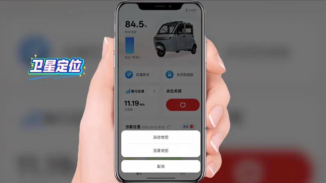 在更為高端的五羊U8 Max上,還可通過手機APP與車輛實現(xiàn)互聯(lián),可以實現(xiàn)衛(wèi)星定位、藍牙自動解鎖、車輛信息巡查、震動告警、低電量告警等一系列智能化功能。