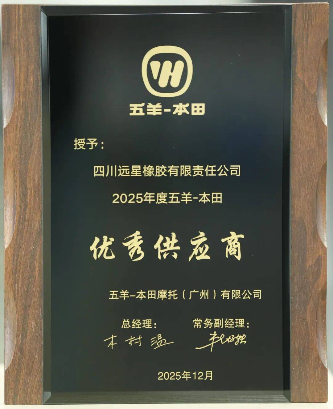 2025年度“優(yōu)秀供應(yīng)商”獎(jiǎng),正如一枚苛刻標(biāo)準(zhǔn)下的“卓越勛章”,彰顯著遠(yuǎn)星輪胎以“卓越質(zhì)量”為基石,以“技術(shù)創(chuàng)新”為引擎,以“全面服務(wù)”為支撐的綜合實(shí)力,以及持續(xù)為合作的整車企業(yè)賦能,助其提升終端產(chǎn)品的市場競爭力、創(chuàng)新差異化和用戶體驗(yàn)感。這也正是遠(yuǎn)星輪胎成為五羊-本田等頂級車企長期戰(zhàn)略伙伴的核心原因。