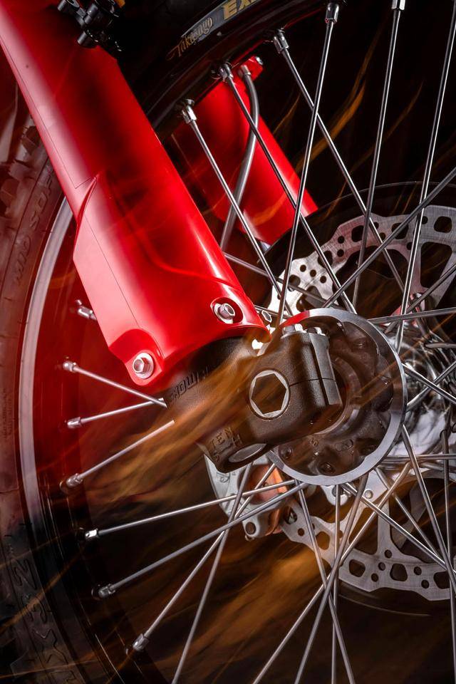 5、制動(dòng)系統(tǒng)保持不變,Brembo布雷博配套的剎車(chē)卡鉗、Galfer 配套的剎車(chē)碟(前碟直徑 260 mm、后碟直徑 240 mm);容量為 7.2 公升的油箱;電子輔助控制系統(tǒng)方面,標(biāo)配了帶有前叉下壓功能的 Holeshot 起步彈射控制系統(tǒng),兩種可選的騎行模式、兩個(gè)可選的動(dòng)力模式,四種不同級(jí)別介入程度可調(diào)的 DTC 牽引力控制系統(tǒng),啟動(dòng)控制,發(fā)動(dòng)機(jī)制動(dòng)控制,快速換檔系統(tǒng);