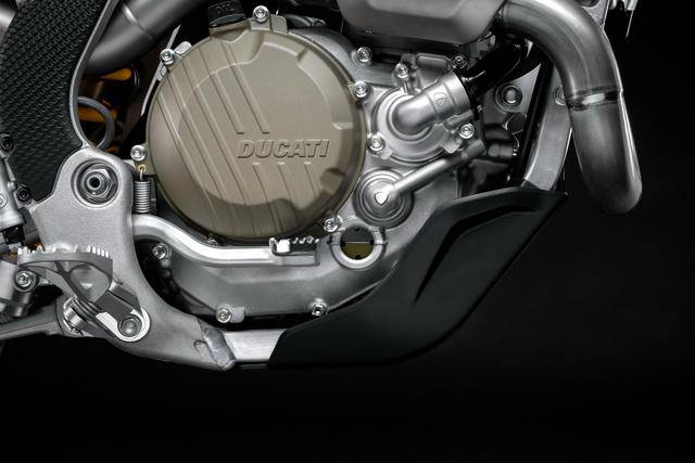 1、與標(biāo)準(zhǔn)版相同的水冷四沖程單氣缸、DOHC四氣閥、Desmodromic 氣閥正時(shí)控制(軸控制氣閥,而常見(jiàn)的氣閥開(kāi)合控制組件是彈簧)發(fā)動(dòng)機(jī),缸徑、行程為 96 mm x 62.1 mm,排氣量 449.6 cc,峰值動(dòng)力輸出 46.7 kw(約 63.5 匹)/9400 rpm,最大扭矩輸出 53.5 N.m/7500 rpm。維護(hù)標(biāo)準(zhǔn)為每使用 45 小時(shí)更換活塞、每使用 45 小時(shí)檢查氣門(mén)間隙,而發(fā)動(dòng)機(jī)大修的間隔設(shè)定為 90 小時(shí);