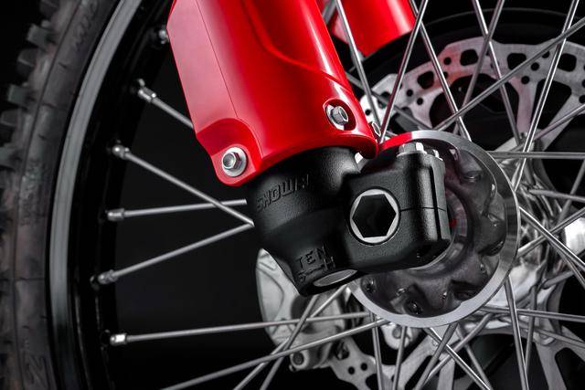 6、其他的升級(jí),包括標(biāo)配了 Wi - Fi 模塊,發(fā)動(dòng)機(jī)底部的護(hù)罩,前剎車(chē)碟護(hù)罩,換裝了帶 O 型橡膠圈的 RK MXU Gold 金色傳動(dòng)鏈條,與工廠車(chē)隊(duì)相同風(fēng)格的車(chē)身圖案/貼花,全車(chē)不含燃料的整備重量為 104 公斤(標(biāo)準(zhǔn)款為 104.8 公斤)。
