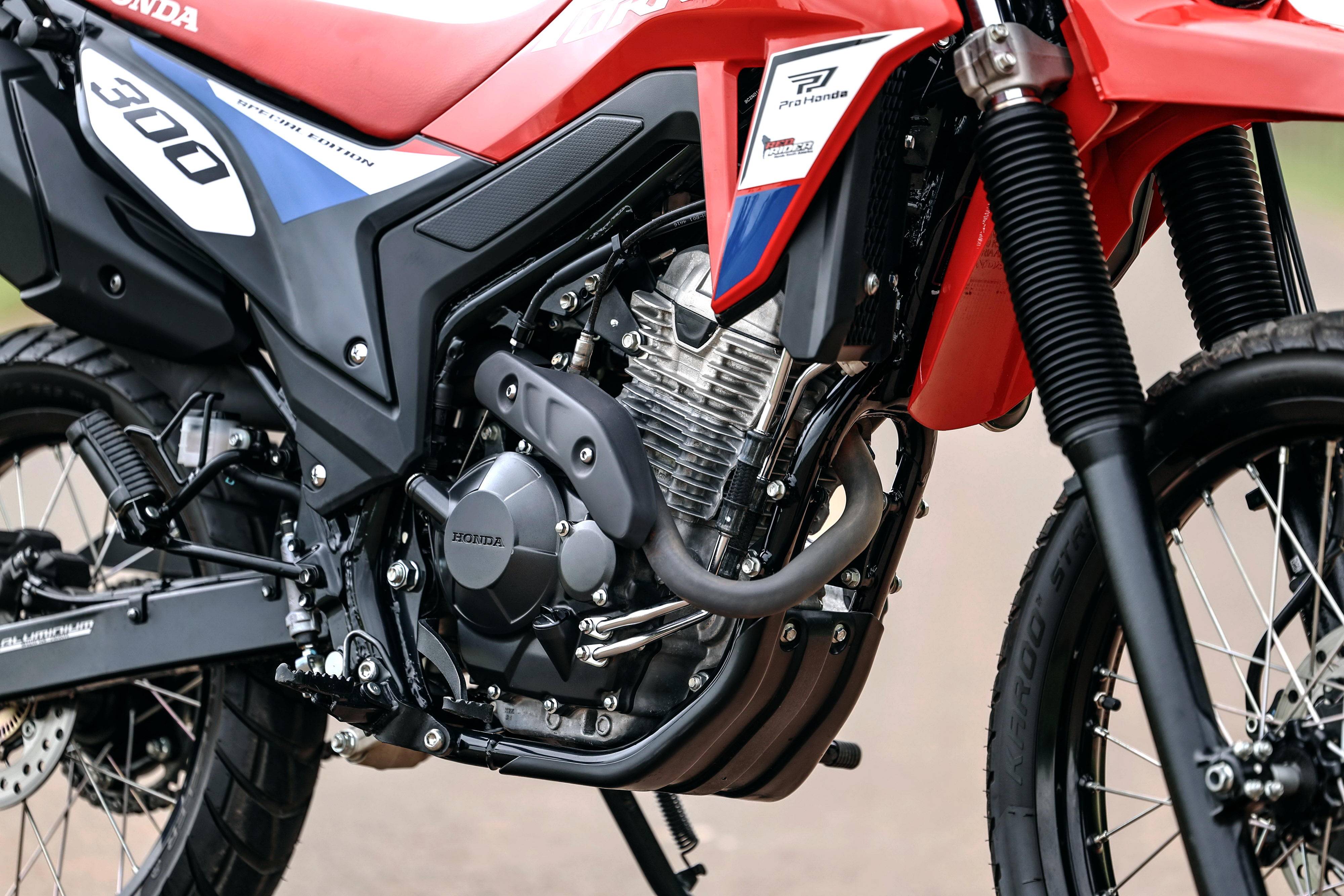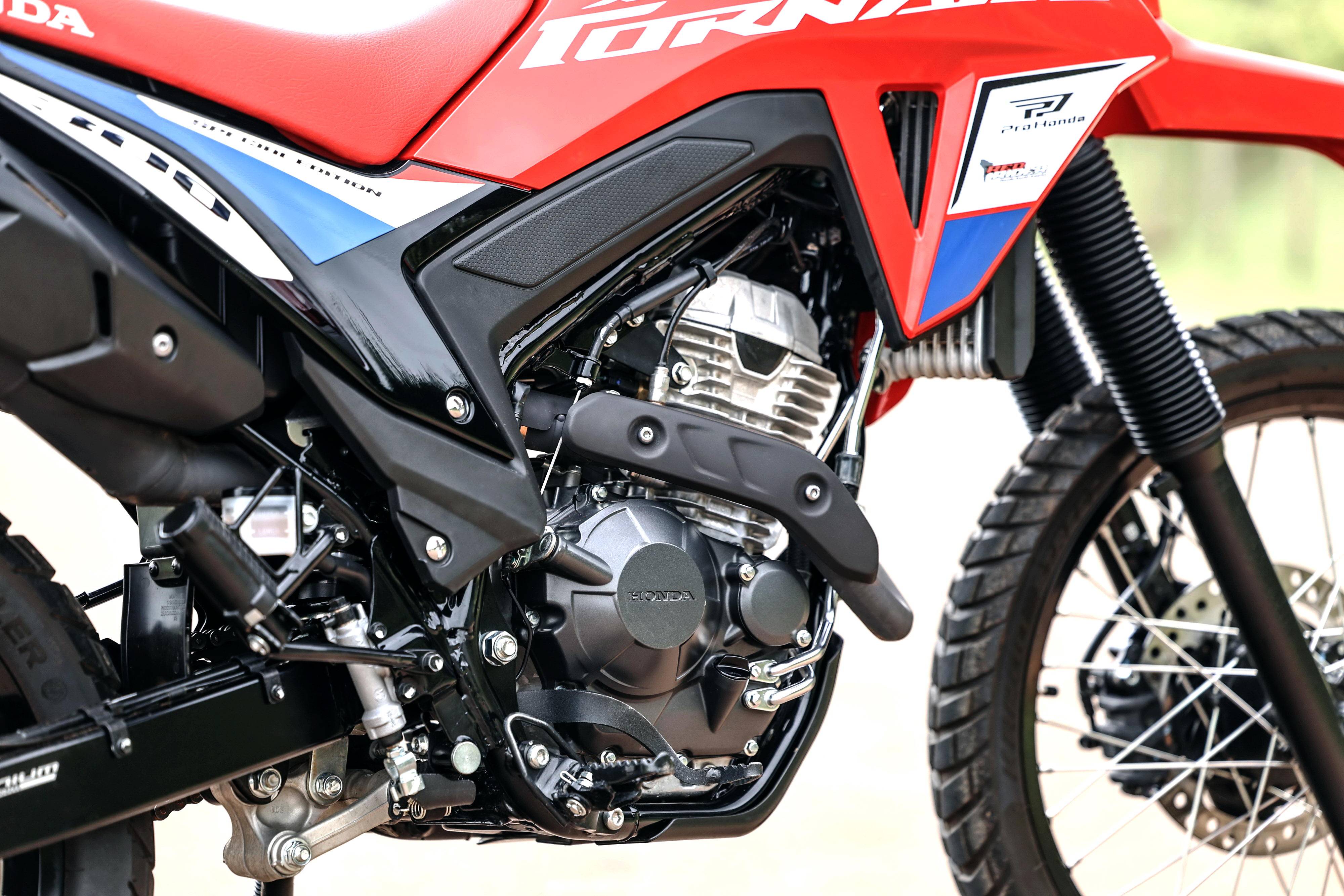 規(guī)格和配置上,XR300L Tornado “ 龍卷風(fēng) ” 特別版與標(biāo)準(zhǔn)款相同,搭載一副風(fēng)冷四沖程單氣缸、SOHC 四氣閥的雙燃料發(fā)動機(jī),缸徑、行程為 77 mm x 63 mm,排氣量 293.5 cc,配備了滑動式離合器、六檔的變速齒輪箱、帶 FlexOne 技術(shù)的 PGM-FI 電子燃油噴注系統(tǒng),峰值動力輸出 24.3 匹(使用常規(guī)汽油燃料)、24.8 匹(使用乙醇混合燃料)。這副動力單元同時也被用于 CB300F Twister 運(yùn)動街車、XRE 300 Sahara “ 撒哈拉 ” 以及 Off-Road 非公共道路使用的 CRF300F。