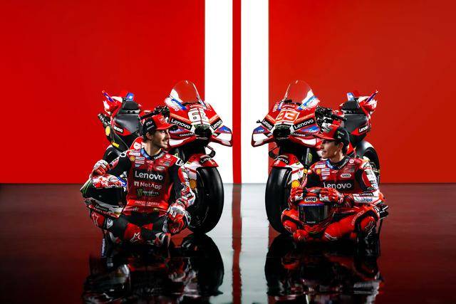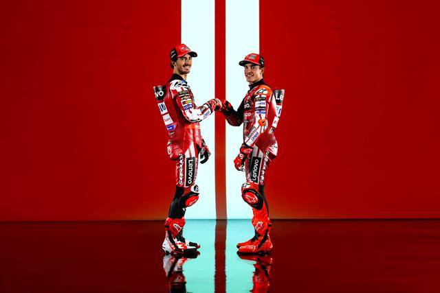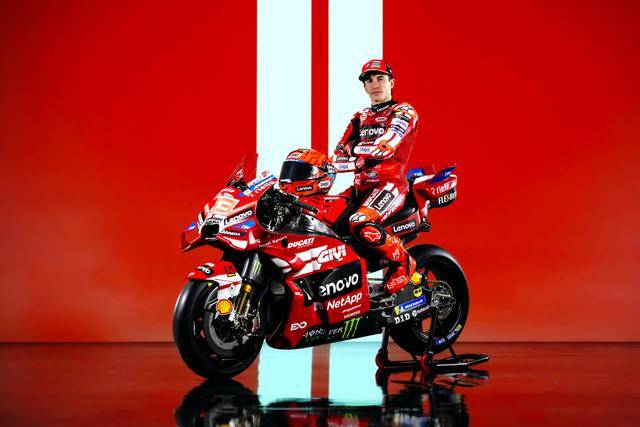 在新賽季,杜卡迪 MotoGP 工廠車隊(duì)沿用了去年的車手組合:駕駛 63 號(hào)車的意大利車手巴納亞(Francesco Bagnaia),以及應(yīng)屆世界冠軍(車手年度積分總冠軍)、駕駛 93 號(hào)車的西班牙車手馬昆斯(Marc Marquez)。