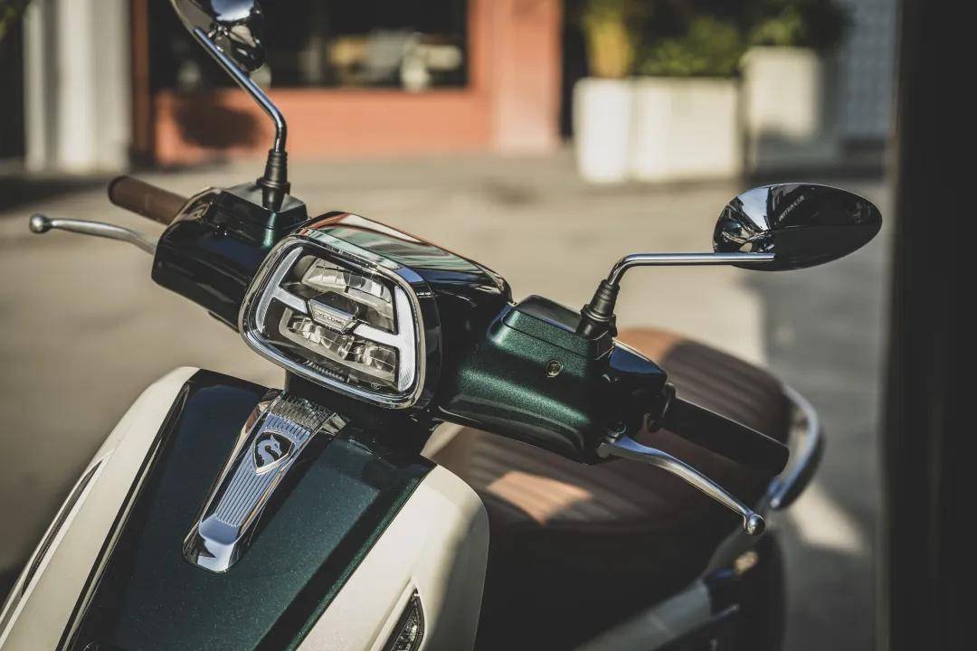外觀上,新潮復古風格盡顯精致:矩形大燈勾勒經典輪廓,75° 飛躍式游艇尾翼注入動感,復古白邊胎搭配闊境朗逸車體,停駐時是流動的美學符號,而平踏設計更讓實用與復古格調完美兼容。