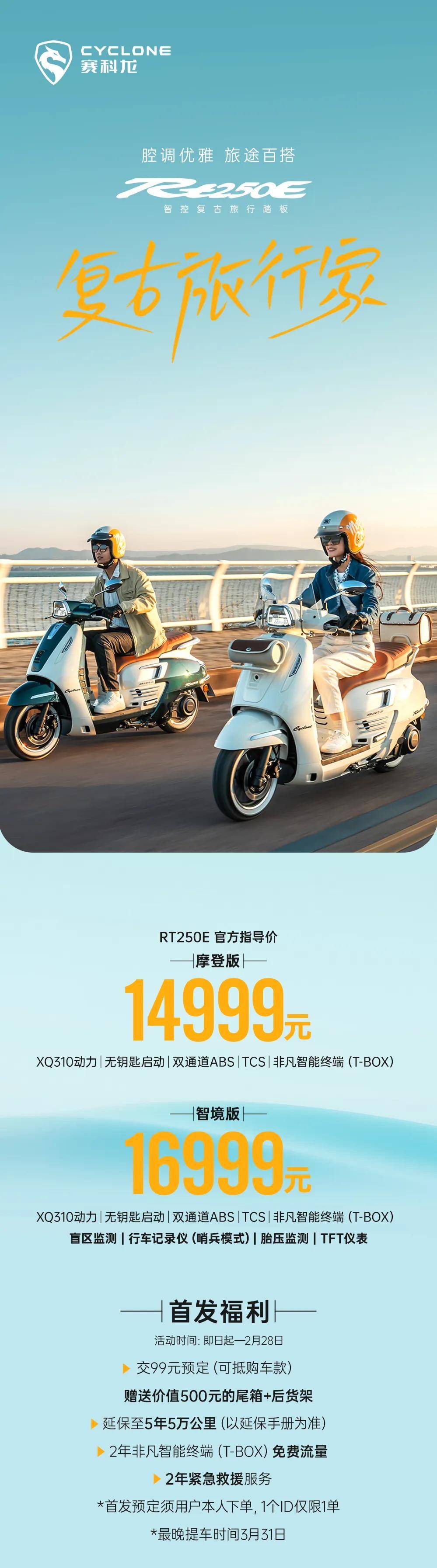 當復古美學邂逅智能科技,賽科龍 RT250E 這款 “復古旅行家” 正重新定義 250 級復古踏板的價值標桿。摩登版14999元,智境版16999元。