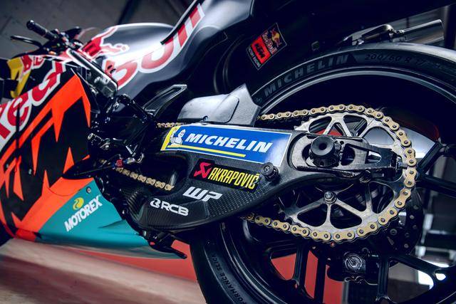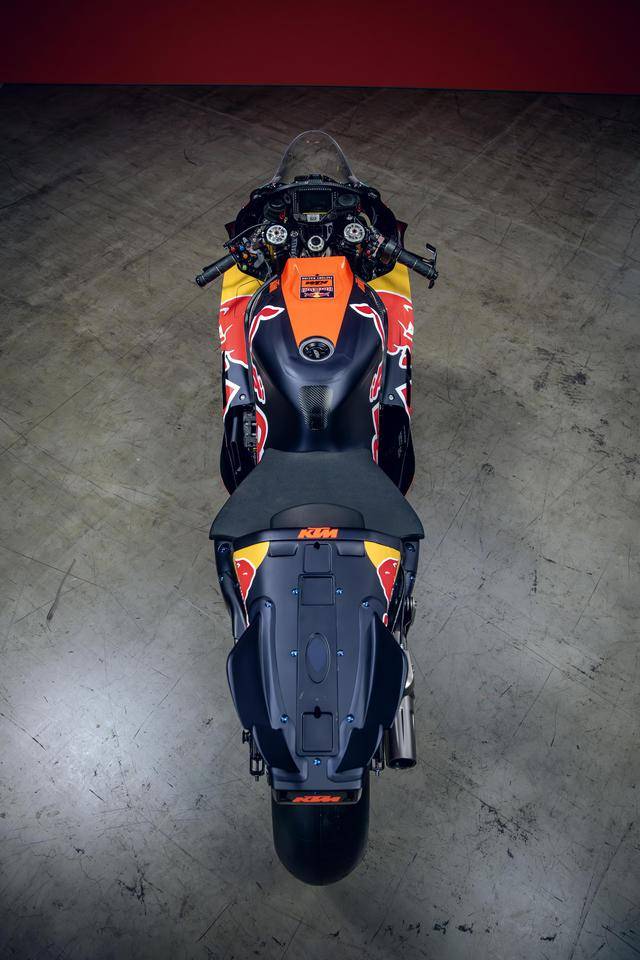 KTM RC16 搭載一副 V 型四氣缸、DOHC 每汽缸四汽閥的發(fā)動機,采用一副混合結構的車架(最初的 2016 - 2019 RC16 采用鋼管編織式的車架),WP 的懸掛系統(tǒng),Brembo 布雷博的制動系統(tǒng)。而持續(xù)獲得更新的、外觀上愈來愈夸張的空氣動力學套件,是每一個新賽季里、RC16 工廠賽車在外部較為顯著的變化之處。