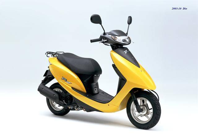 10、到 2003 年十月,Honda 向本土市場推出了第五代的 Dio(AF62),搭載一副全新的風(fēng)冷四沖程 AF61E 發(fā)動機(jī)(缸徑、行程為 37.8 mm x 44 mm,而上一代的水冷四沖程發(fā)動機(jī) AF55E 為 38 mm x 44 mm)。從這一代車型首次推出的 2003 到第六代最后一次更新的 2013 年,日本本土銷售的 Dio 標(biāo)準(zhǔn)型和 Dio Cesta,均由中國新大洲本田(新大洲本田摩托有限公司)生產(chǎn)、再返銷本土;