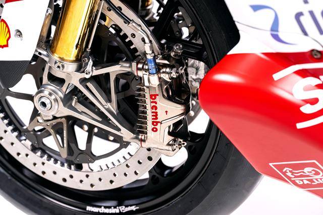而 WorldSBK 工廠賽車規(guī)格的 2026 Panigale V4 R,發(fā)動(dòng)機(jī)內(nèi)部經(jīng)過賽車部門專門改造,采用了馬瑞利(Magneti Marelli)的 ML 統(tǒng)一規(guī)格 ECU,帶液壓控制的 STM 干式離合器,配備了 Akrapovic阿克拉波維奇的鈦合金制排氣系統(tǒng),官方公布的最大馬力輸出 235 匹/16500 rpm;車體方面,采用了 Ohlins 奧林斯非零售規(guī)格的 RVP 懸掛系統(tǒng),Brembo布雷博的制動(dòng)系統(tǒng)。
