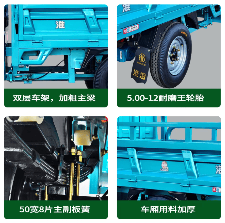 淮海悍將200主打“勁大、高效、耐用”,最大載重可達(dá)3000斤,不僅動(dòng)力強(qiáng)勁,更配備便捷自卸功能,大幅提升運(yùn)輸效率。動(dòng)力系統(tǒng)搭載1500W加強(qiáng)型電機(jī),配合智能扭矩控制器,低速檔位扭矩強(qiáng)勁,滿載起步不溜坡;高速檔位時(shí)速可達(dá)45km/h,提速順暢,滿載超車也游刃有余。