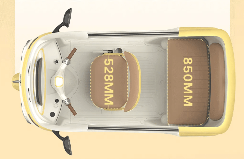 空間與舒適性堪稱同級標桿,座艙采用寬體設(shè)計,內(nèi)部橫向空間達1200mm,配備前后雙排三座布局,后排座椅寬度980mm,可輕松容納兩位成年人或兩個孩子,搭配貼合人體工學(xué)的高回彈記憶海綿座椅,軟硬適中,能有效緩解長時間乘坐的疲勞感。座艙內(nèi)部可開啟全景天窗與側(cè)窗,通風(fēng)換氣便捷,告別悶熱困擾。