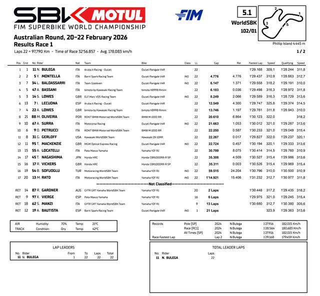 FIM WorldSBK 超級(jí)跑車(chē)世界錦標(biāo)賽(FIM Superbike World Championship)2026 賽季的揭幕戰(zhàn),二月 20 - 22 日在澳大利亞的菲利普島(Phillip Island)賽車(chē)場(chǎng)舉行。