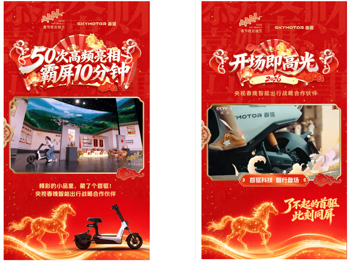 核心提示:2026年除夕夜,首驅(qū)科技以智能出行戰(zhàn)略合作伙伴身份亮相央視春晚。這是兩輪電動車品牌首次進入春晚主舞臺的合作序列,也是春晚創(chuàng)