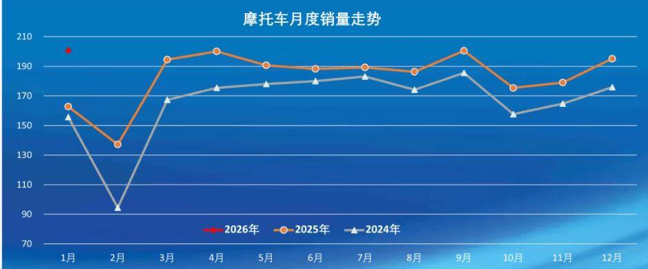 進入2026年1月我國燃油摩托車業(yè),迎來了一個小小的開門紅。中國摩托車商會數(shù)據(jù)顯示,1月全行業(yè)燃油摩托車完成了172.36萬輛的銷量,同比有3.97%的增長率。