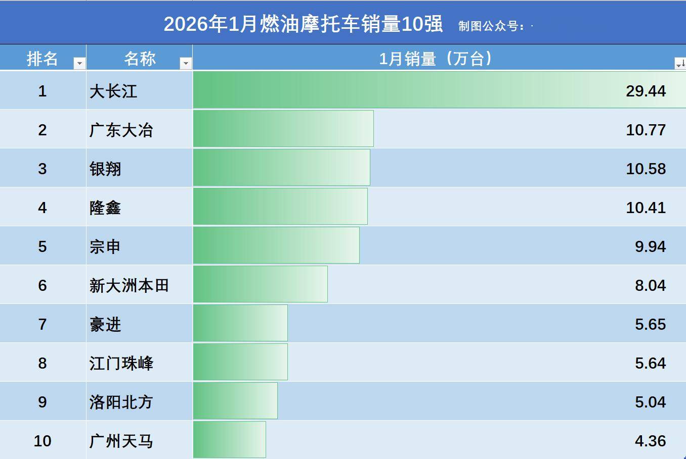2026摩托車1月銷量:豪爵鈴木29萬輛,銀翔超隆鑫,新大洲本田第6