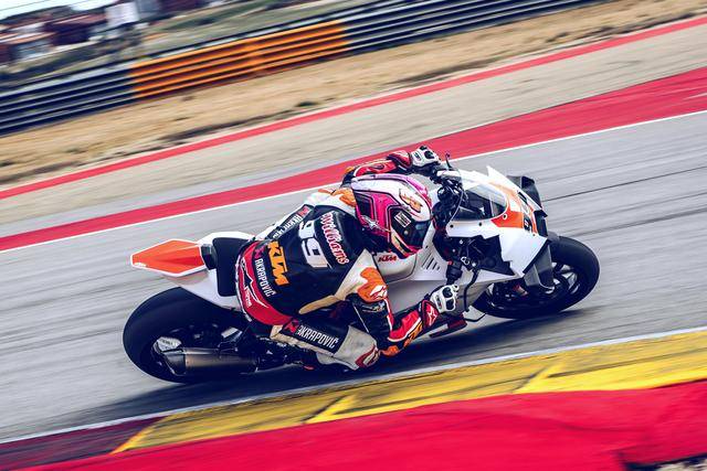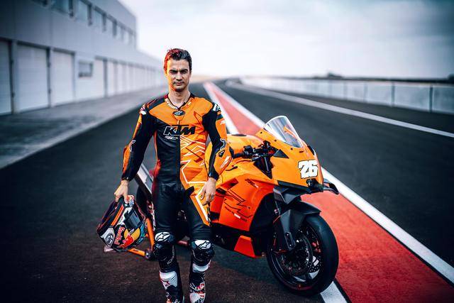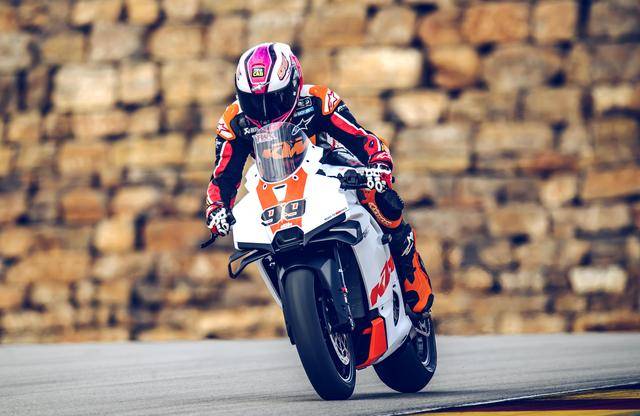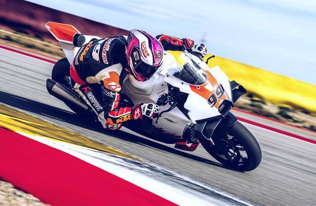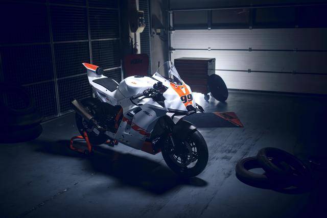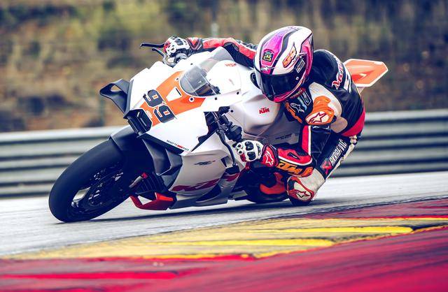 下面的圖片,2026 KTM 990 RC R Track 賽道版。而車身編號 99 的測試車手是來自德國前 WGP 車手麥威廉斯(Jeremy McWilliams)。