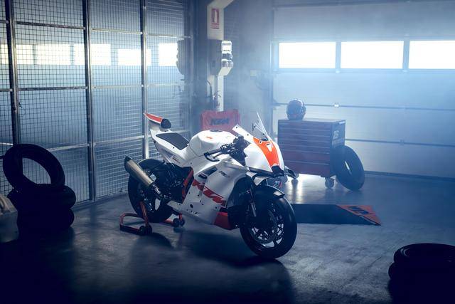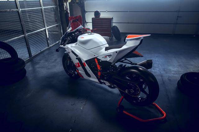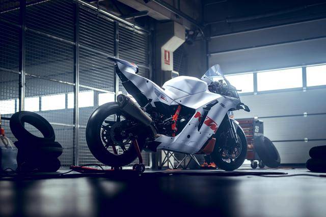 1、這款賽道版基于量產市售(可上牌)規(guī)格的 990 RC R 跑車改造而成,專門為賽道使用而設計,拆除了燈光系統、后視鏡、側支架等非賽道必須的組件。廠方稱,新的賽道版換裝了高價值、但友好的入門級比賽配置,低維護(成本)、易于維修并獲得各地經銷商的支持是其重要特點;